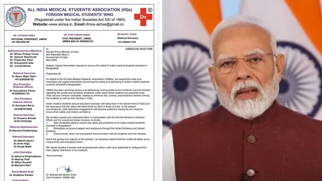 In a formal letter to the Prime Minister, AIMSA highlighted that Indian students studying in Bangladesh are experiencing unsafe living conditions, leading to anxiety, fear, and emotional distress. “Their security is vulnerable, and the uncertainty is taking a heavy toll on the students and their families in India. These students rely on the Government of India to ensure their safety during such crises,” the letter read.