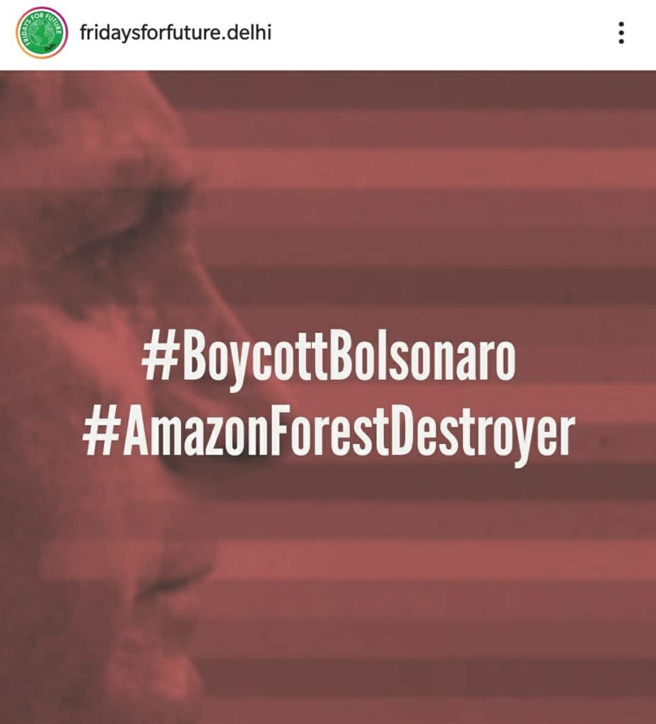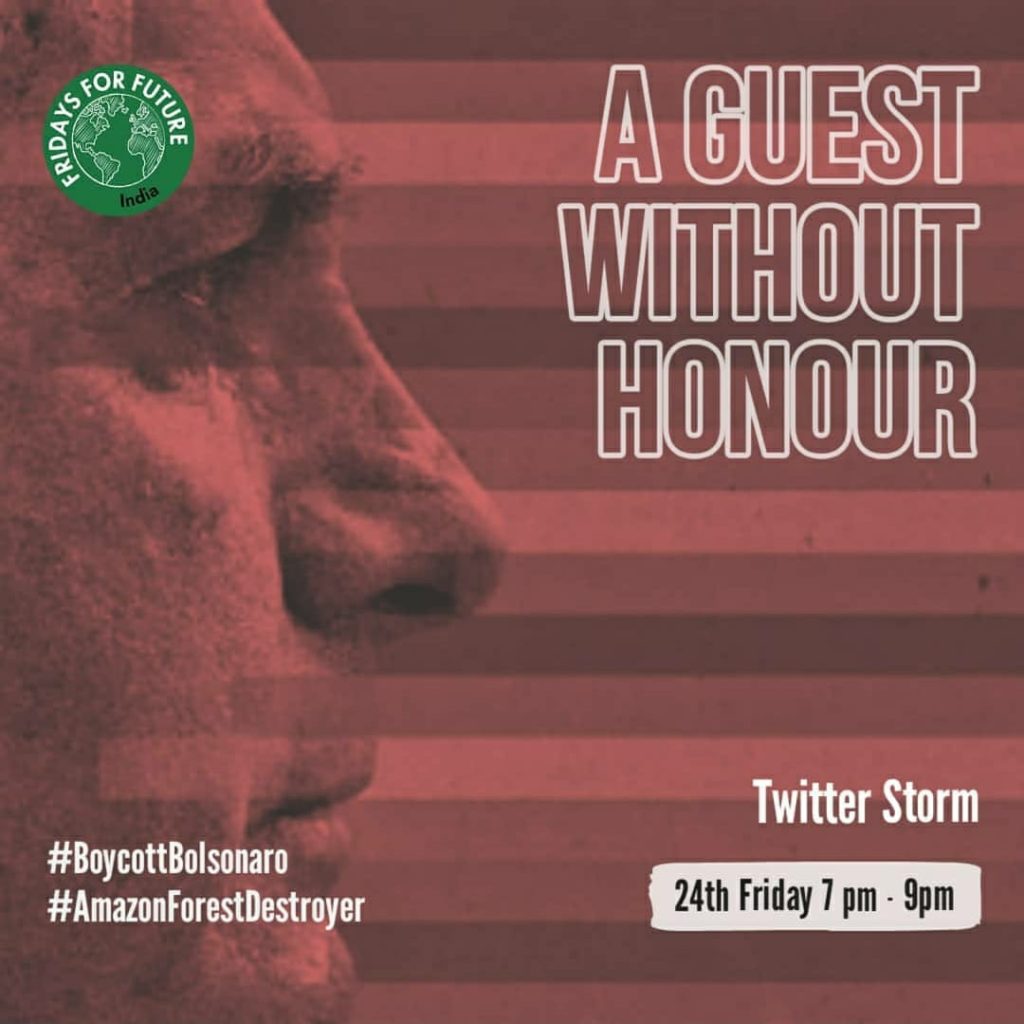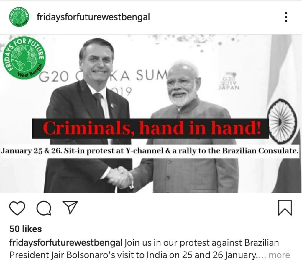 Various social media channels – groups and individual accounts were bustling with protest posts on Bolsonaro’s visit. According to a post from Kolkata – an appeal was made to locals to join in a sit-in protest on 25 January, followed by a public march on the Brazilian Consulate on 26 January.
