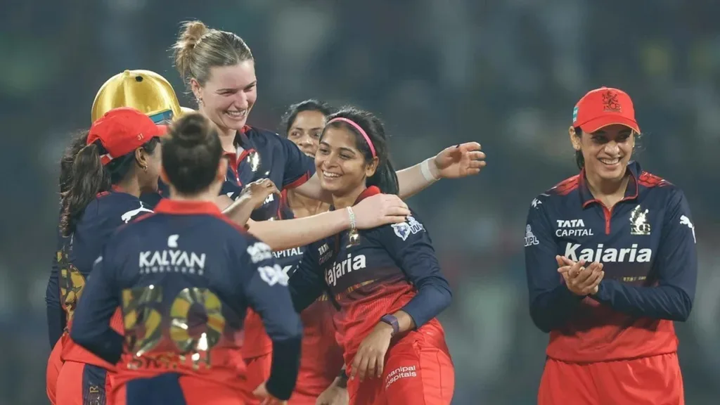 The innings never truly accelerated. Kamalini showed composure, rotating strikes efficiently, while the middle overs became a phase of consolidation rather than domination. A sharp moment came when Richa Ghosh effected a razor-close stumping to dismiss Nat Sciver-Brunt off de Klerk’s bowling — a reminder of RCB’s alertness in the field.