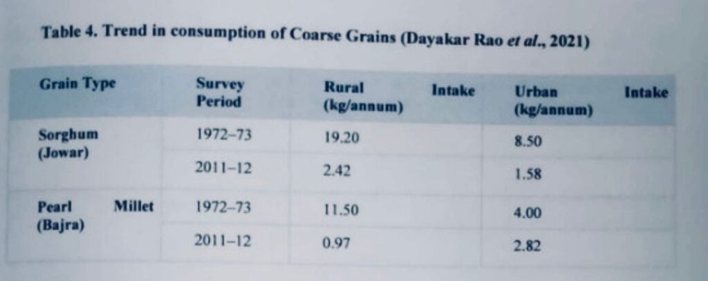 Consumption of traditional coarse grains like jowar and bajra has declined sharply over decades.