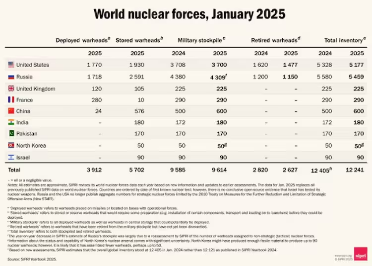 SIPRI’s assessment attributes India’s increase to a steady expansion of its nuclear arsenal and continued investment in advanced delivery systems. These include canisterised missiles capable of carrying multiple warheads and remaining mated during peacetime, enhancing readiness and survivability.