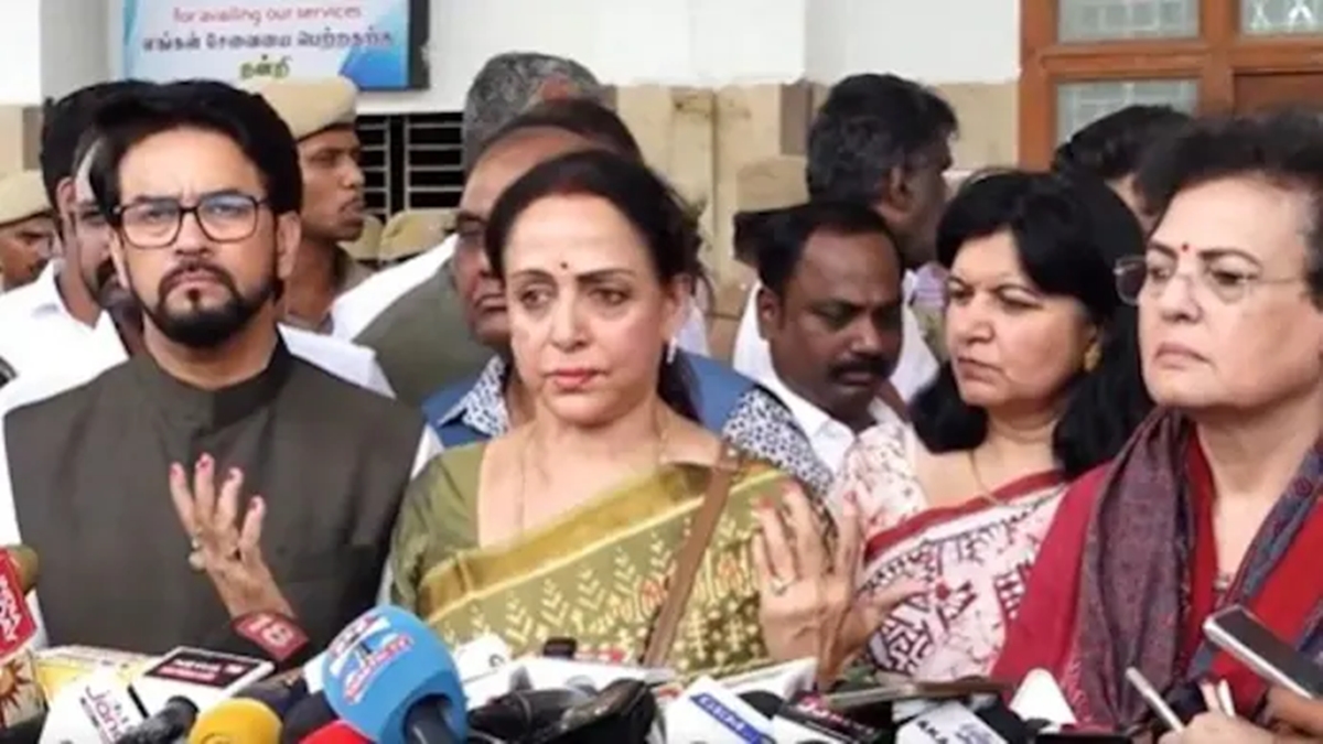 Karur: A BJP delegation of eight MPs, led by Hema Malini and including Anurag Thakur and Tejasvi Surya, visited Karur on Tuesday to examine the tragic stampede during a rally addressed by Tamilaga Vettri Kazhagam (TVK) chief Vijay, which claimed 41 lives.