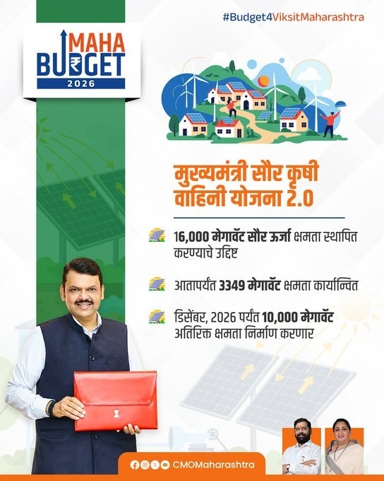 Mumbai: The Maharashtra Budget 2026–27 outlines a major push towards renewable energy and energy security, with the government expanding solar programmes, pumped hydro projects and electricity subsidies for farmers.