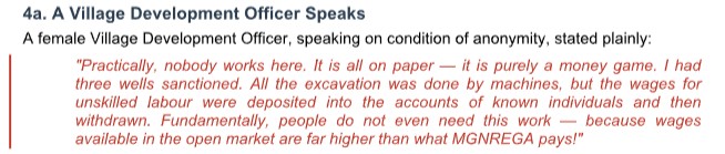 Beyond audit figures lies a more troubling reality — the voices of those who implement the scheme. A village-level officer, speaking anonymously, described the situation bluntly: