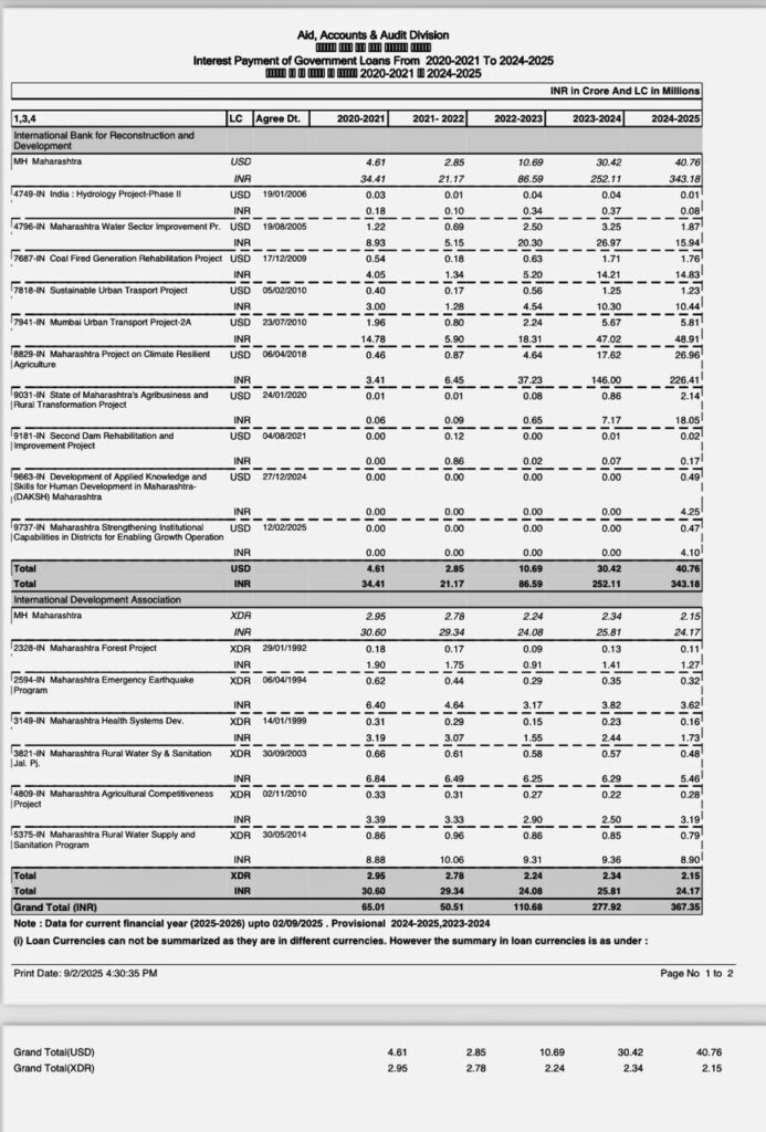 From barely ₹20–30 crore in annual interest in the 2000s, Maharashtra today shells out ₹367 crore a year — not on schools or hospitals, but just to service interest on these loans. One project alone, the Climate Resilient Agriculture Scheme, sucked out ₹226 crore in 2024–25.