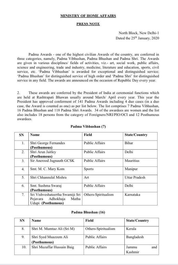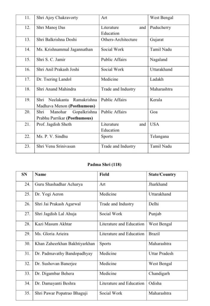 “Congratulations to all those who have been conferred the Padma Awards,” he tweeted.