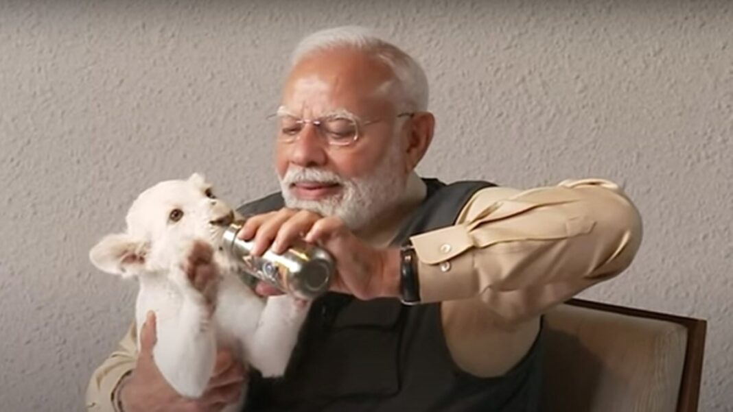 In a heartwarming moment captured on video, PM Modi was seen playing with and feeding rare and endangered animal cubs, including Asiatic Lion cubs, a White Lion cub, a Clouded Leopard cub, and a Caracal cub. The visuals, shared on his official YouTube channel, have quickly gone viral, showcasing his deep compassion for wildlife and environmental conservation.
