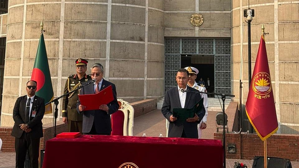 Dhaka: Tarique Rahman was sworn in as Bangladesh’s new Prime Minister on Tuesday in a ceremony held at the South Plaza of Jatiya Sangsad Bhaban. Mohammed Shahabuddin administered the oath at around 4:15 pm local time.